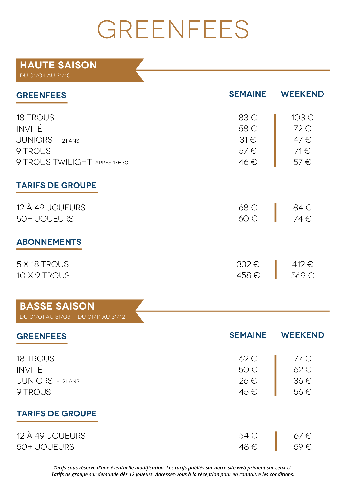 greenfEes, ABONNEMENTS & GROUP RATES